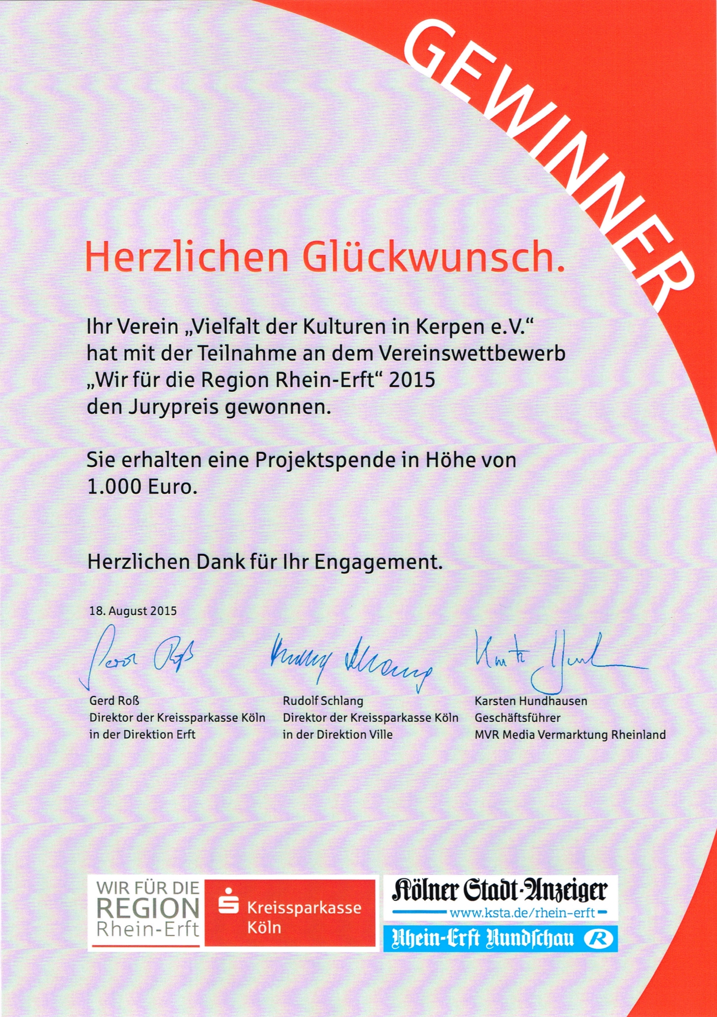 August - Jurypreis "Wir für die Region Rhein-Erft