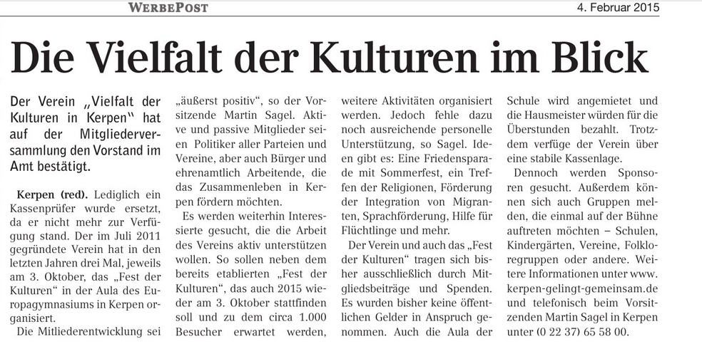 Martin Sagel, Vorsitzender des Vereins „Vielfalt der Kulturen in Kerpen e.V.“
