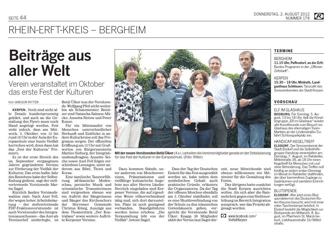 der Kulturen" - Rhein-Erft Rundschau HIER
